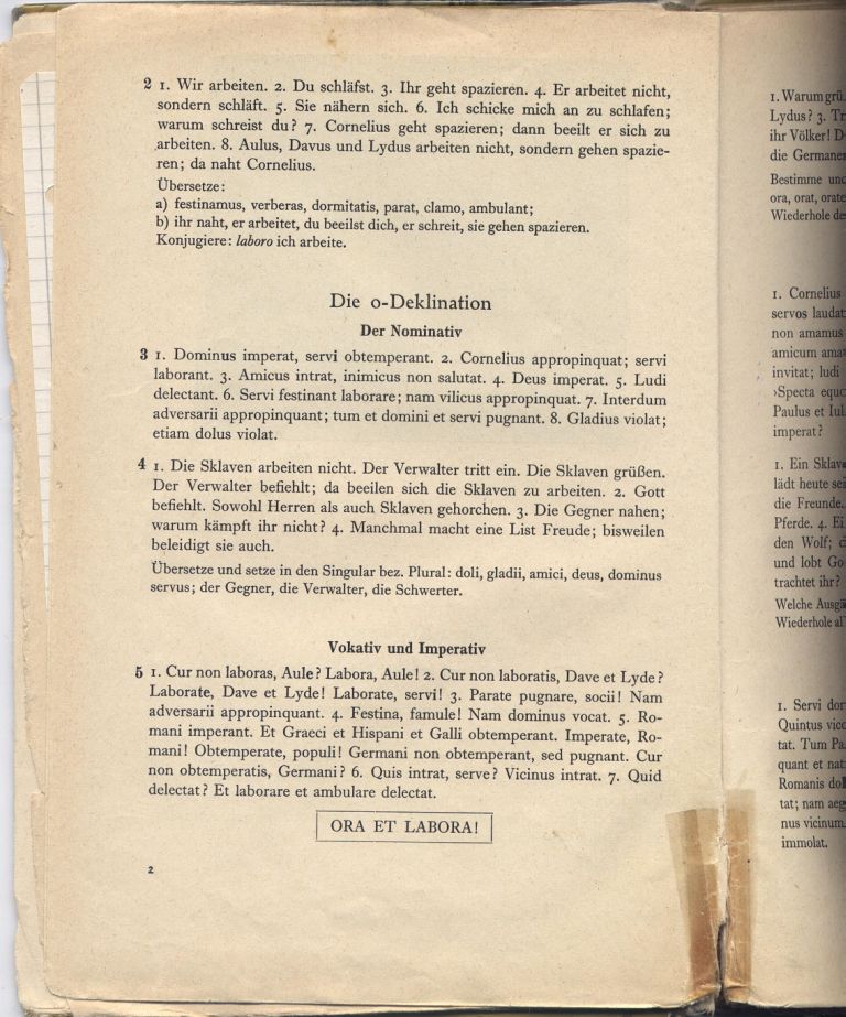 Der Lernwortschatz im 1. Band von „Exercitia Latina“ umfasste übrigens ca. 1100 Vokabeln, während unsere Lateinschüler mit dem am aktuellen Lehrplan orientierten „Campus C“ und ca. 550 Wörtern gerade einmal die Hälfte davon zu bewältigen haben – auch da haben sich die Zeiten geändert!
