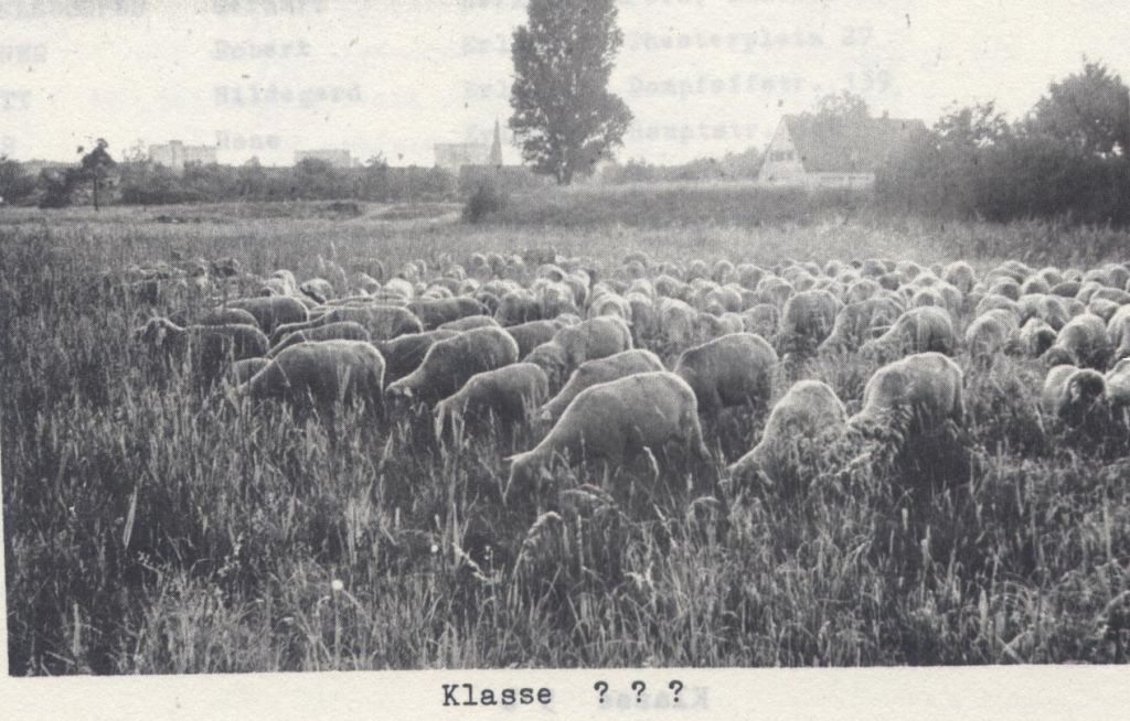 Zum Schluss sei noch ein Blick in den Jahresbericht des ASG von 1967/68 unter der Rubrik „Klassenfotos“ erlaubt: Vielleicht erkennt jemand auf einem der beigefügten Bilder die ehemalige ASG-Schülerin, die „ihrer“ Schule bis heute treu geblieben ist. Der Herr im Schwimmbecken ist übrigens der damalige Schulleiter, OStD Heinz Koehler; das „caput sine corpore“ ist der Klassenleiter – bei den schlauen Mathematiklehrern ist der Kopf ja besonders wichtig!